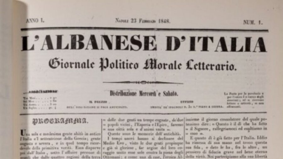 Më 23 shkurt 1848, doli numri i parë i gazetës “L’Albanesed’Italia” (Shqiptari i Italisë). Kjo gazetë mbrojti të drejtat e shqiptarëve, duke paraqitur fakte dhe argumente historike përShqipërinë, me qëllim që opinioni italian dhe më gjerë të njihejme këtë çështje. Në krye të saj ishte figura e shquar e JeronimDe Radës, rilindës i njohur i kohës. Muzeu Historik Kombëtar e përkujton këtë ngjarje të rëndësishme dhe thekson se shtypi iasaj periudhe dha kontribut të madh në fushën shoqërore, kulturore dhe politike gjatë Rilindjes Kombëtare shqiptare. Shtypi arbëresh lindi si një nevojë e domosdoshme për ruajtjen e ekzistencës kombëtare dhe shoqërore të dhjetëra mijërashqiptarëve që u shpërngulën nga trojet shqiptare dhe u vendosën në Itali, veçanërisht pas vdekjes së Skënderbeut nëshekullin XV.