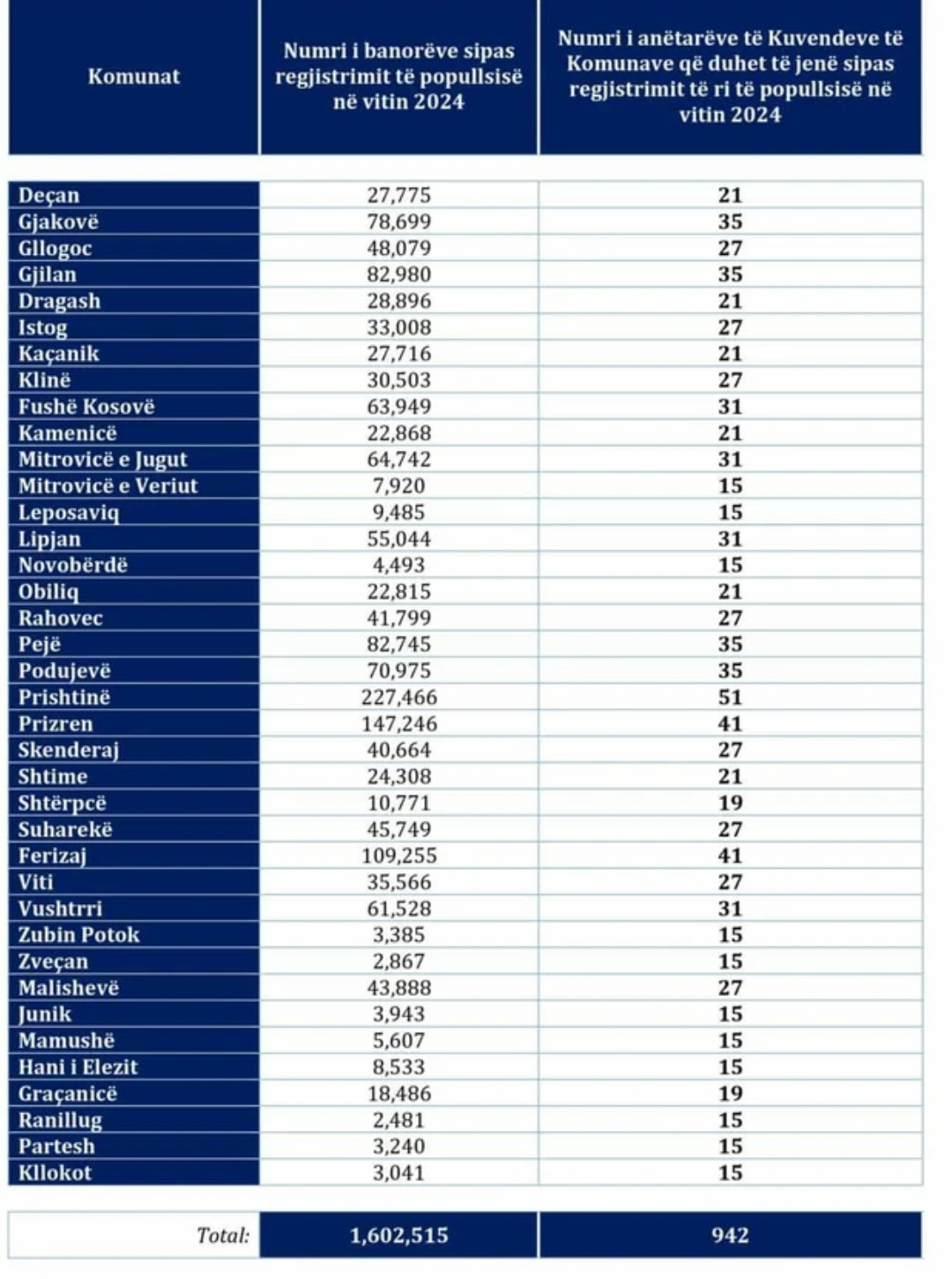 Ferizaj – 109,255 banorë, 41 anëtarë